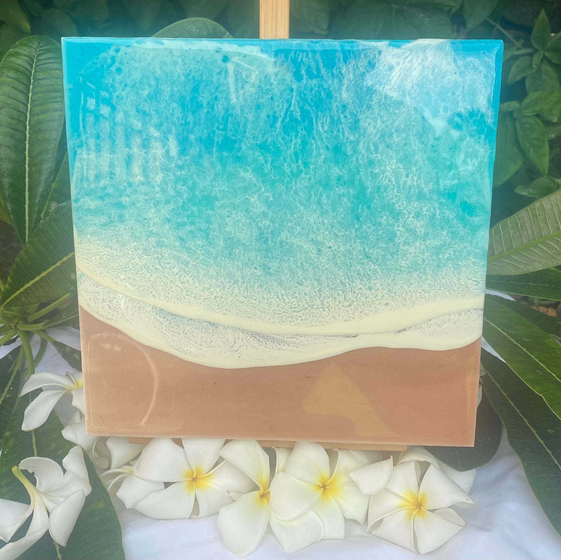 You can really imagine yourself sitting on this beach when you are viewing it. its dry textured sand and beautiful turquoise waters. Created with top of the line epoxy resin and Createx airbrush acrylic paints.