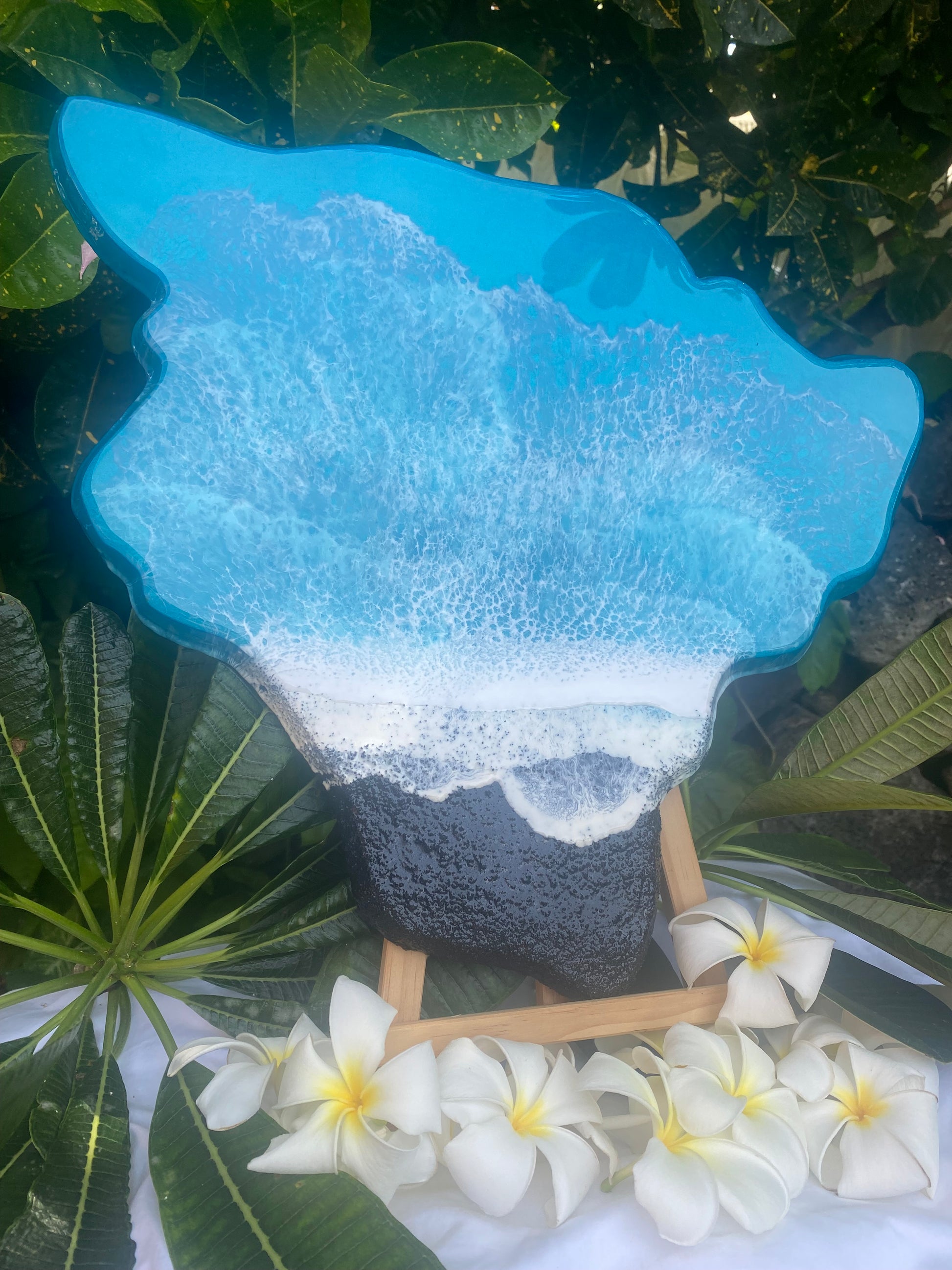 Hand carved Big island of Hawaii with black sand beach. Handmade in Hawaii with top of the line epoxy resin and Createx paint. Roughly 16x18 inches.