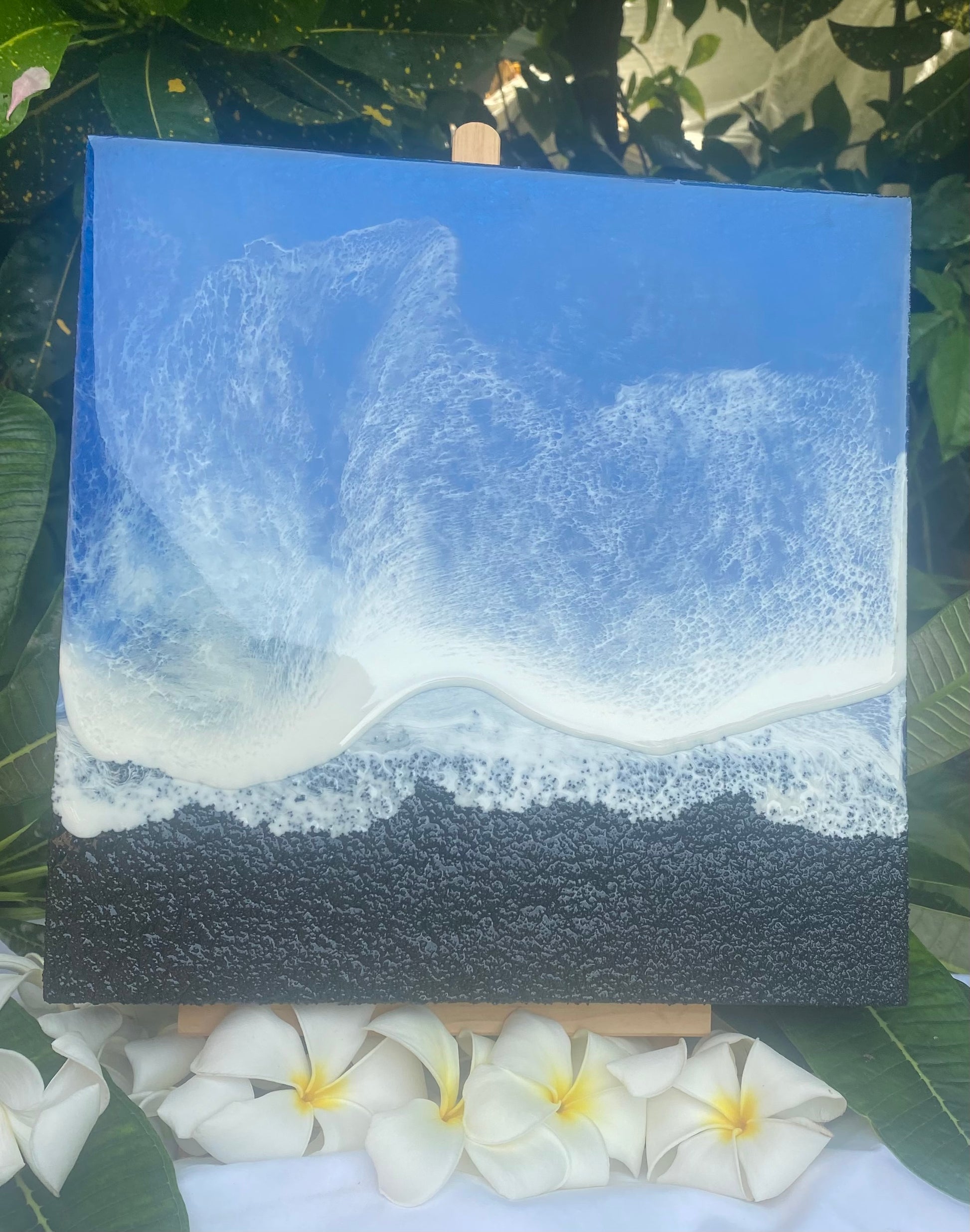 Epoxy Resin ocean scene painted on 12x12 wood panel box, Made with top of the line Epoxy Resin, Pigments and Createx paints 1-1/2 depth