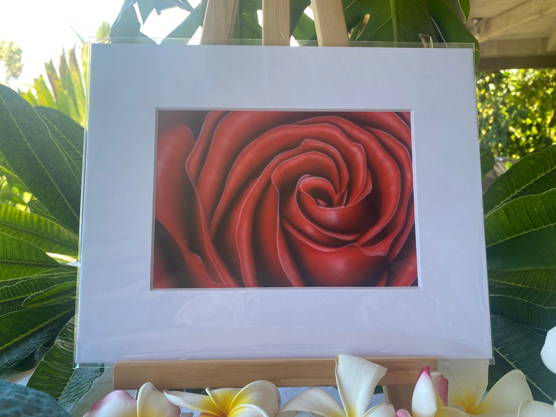 Red Rose signed 5x7 print. Actual matted size 8x10