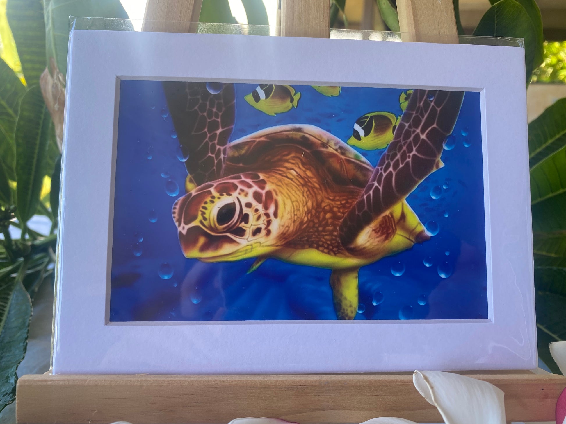 Royal Honu close up. Signed 4x6 print. Actual matted size 5x7